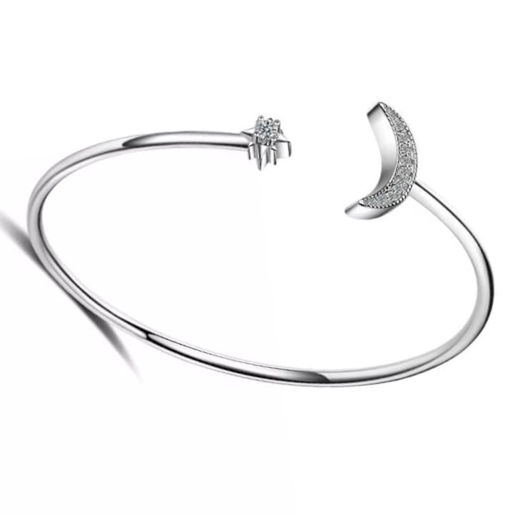 The Orbit Bangle Moon and Star (Sterling Silver)